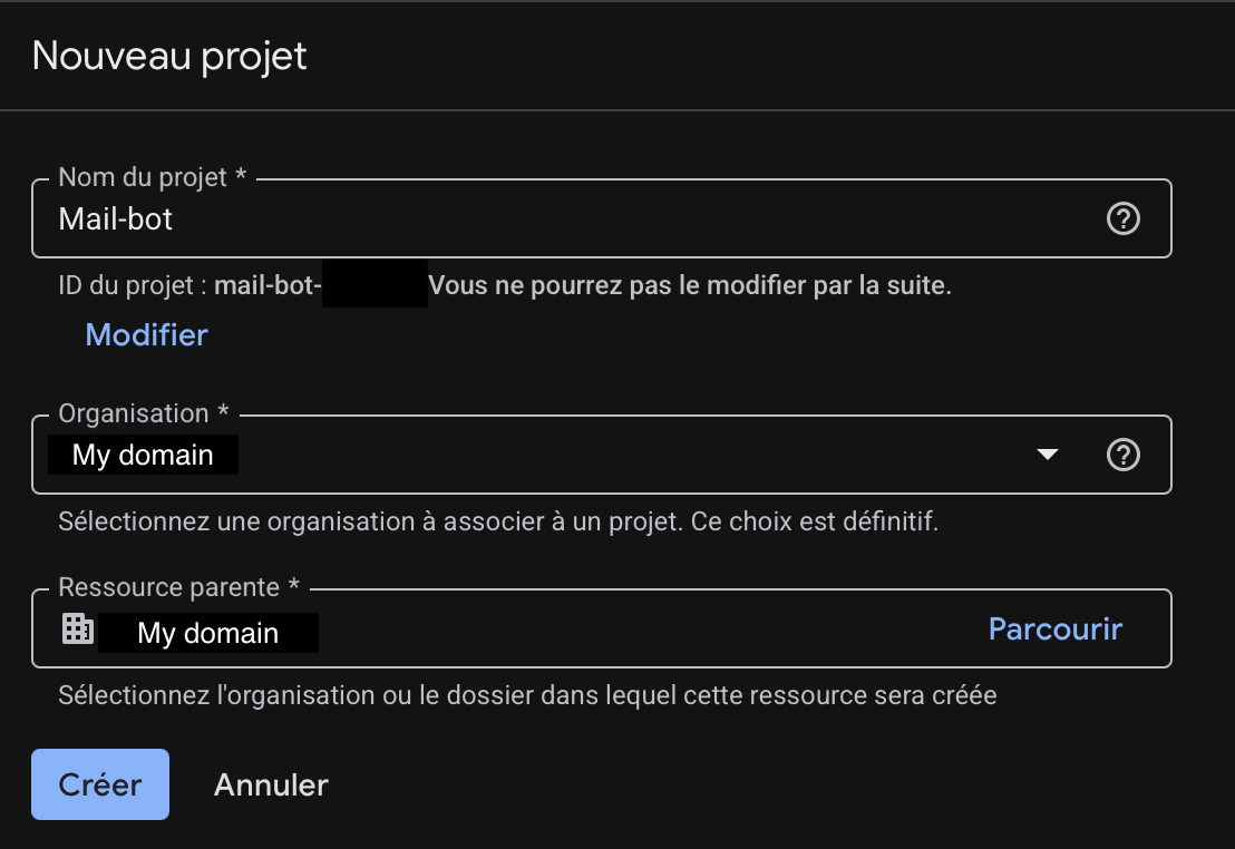 Go to console.cloud.google.com and create a new project. If you have a Google Workspace organization, make sure to select it as the parent resource.