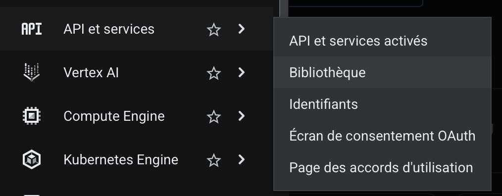 In the left menu, go to API & Services → Library. This is where you can browse and enable any Google API for your project. By default, none are enabled — you need to explicitly activate the ones your application will use.
